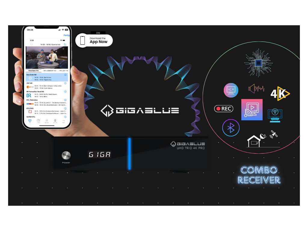 Nový GigaBlue UHD Trio 4K Pro má 1 x DVB-S2x tuner a navíc je rozšířen o hybridní tuner DVB-C/T2. A lze ji tedy použít jako kombinovanou variantu. Model nabízí všechny potřebné možnosti pro plynulé a kvalitní televizní a multimediální vyžití.